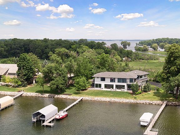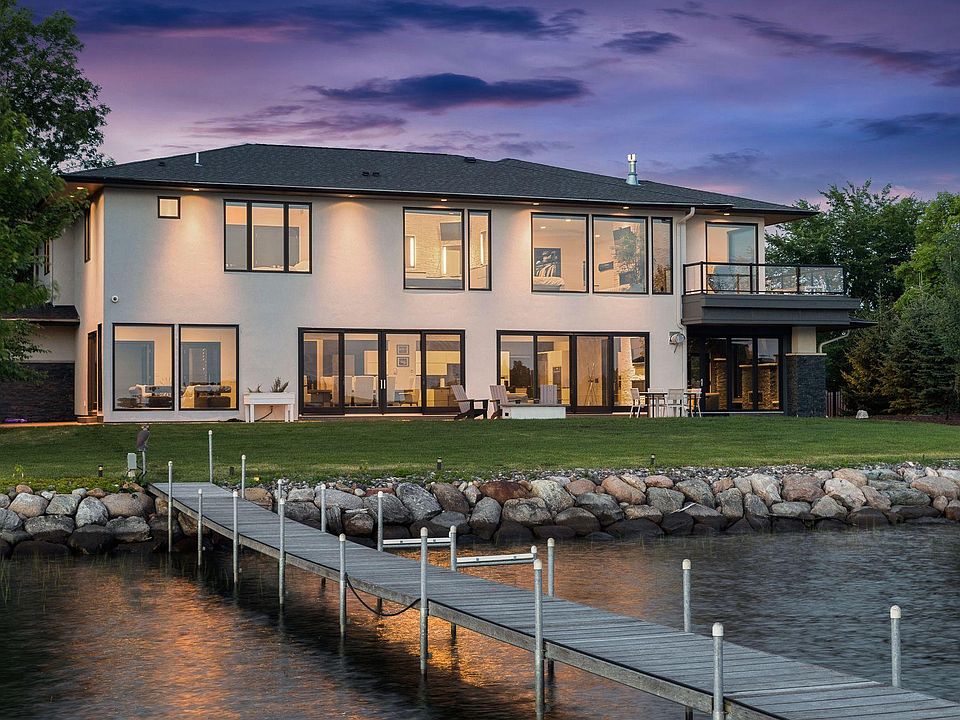 Situated on Old Channel Bay of Lake Minnetonka, this sensational home presents a modern design with the finest of features & state-of-the-art amenities. Open concept on the ML & generous room sizes allow for easy entertaining & everyday living w/ multiple sitting/dining areas, theater w/ 3D projector, 110in screen & surround sound, wine cellar, recently finished four-season porch w/ gas fireplace & telescoping doors, stunning gourmet kitchen w/ pantry, as well as 2 baths and 2 walk-in closets; and 55' of windows lend west-facing panoramic views of the lake & incredible sunsets. Upstairs is just as impressive with its remarkable master suite boasting lake views, a double-sided fireplace, sitting area, private balcony, wet bar, huge dressing room & spa-like bath; exercise room, loft, 3 addtl BRs, 3/4 en suite, full bath/laundry. Outside, enjoy an extensive patio overlooking the large backyard & lake, 115' of sandy shoreline, private dock, separate patio for grilling & fenced-in dog run.