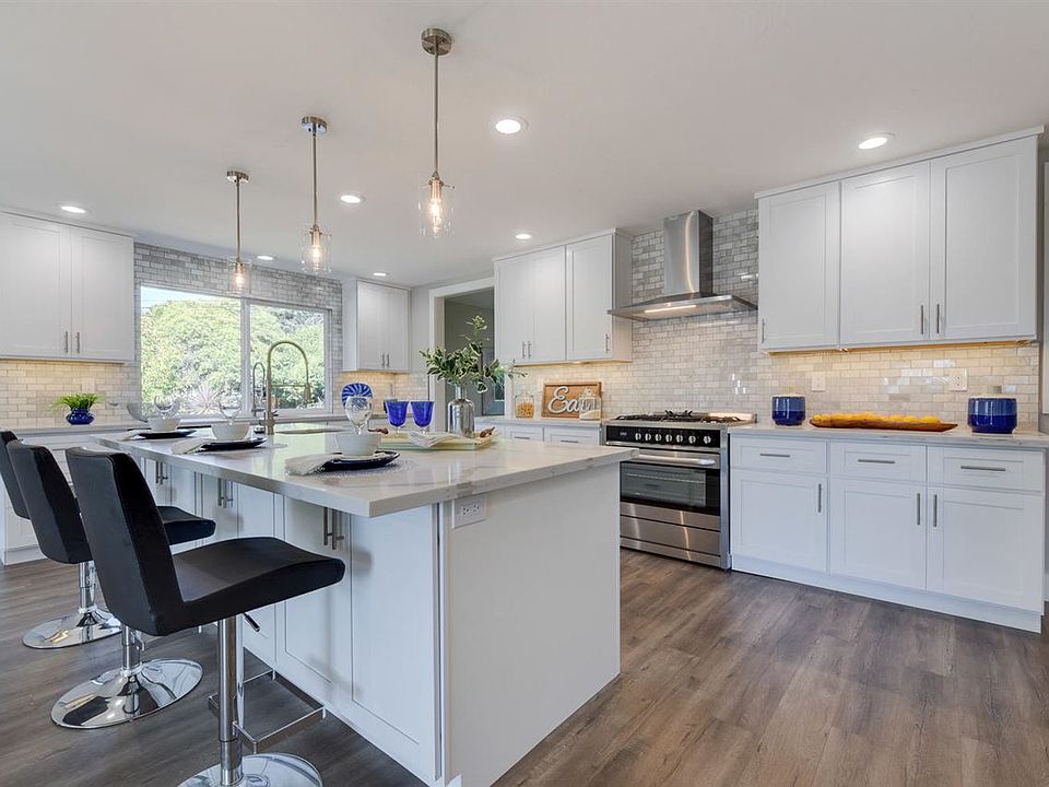 Open House Saturday, Sunday 11/17 & 11/18 from 2-4 PM. SERENITY AWAITS; AN AWE INSPIRING MODERN PERMITTED REMODEL INCLUDE STATE OF THE ART CHARACTERISTICS. ENTER THRU STYLISTIC GATEWAY INTO WARM, PEACEFUL FRONT YARD TOWARDS AMAZING HOME WITH VIEWS FROM NEWLY BUILT HEART REDWOOD DECK OFF OF MASTER BEDROOM AND FAMILY ROOM. MANY UPGRADES INCLUDE FRESH FLOORING THRU HOME, REMODELED KITCHEN WITH SHAKER WHITE CABINETRY, GLEAMING QUARTZ STONE COUNTER TOPS, LARGE ISLAND SETTING WITH VACUUM PAN, DIM CONTROLLED LIGHTING UNDER CABINETRY AND NEW APPLIANCES. COMPLETE BATHROOM REMODELS INCLUDE GORGEOUS WALK IN MODERN SHOWERS, STUNNING COLORS OF TILE FLOORING, SURROUND WALLS AND VANITIES. MASTER BATH HAS WALK IN SHOWER AND FREESTANDING BATHTUB. NEW DOORS, WINDOWS, BARN CLOSET/ENTRY DOORS THROUGHOUT HOME AND CENTRAL VACUUM SYSTEM, REMOTE CONTROLLED GATE ENTRY. NEW ELECTRICAL FIXTURES, WIRING AND PLUMBING UPGRADES. DOWNSTAIRS AREA INCLUDES ADDITIONAL LIVING AREA, BEDROOM, BATHROOM AND LAUNDRY.