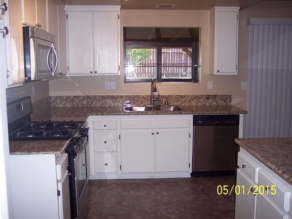 Terrific free flowing, one story floor plan with expansive living areas. Large living room with cozy fireplace and vaulted ceilings. Big family room with freestanding wood-burning stove & French doors to rear covered patio. Kitchen has granite counters, breakfast bar and newer stainless steel appliances. Baths have granite counters and custom tile tub/shower surrounds. Ceiling fans in all bedrooms. Nice sized rear yard with shade tree and two covered patios. Gated RV access.