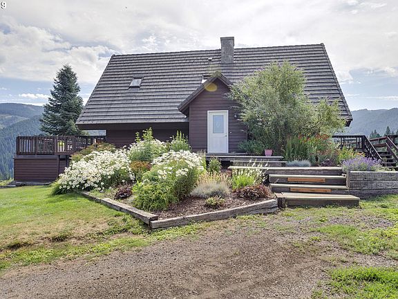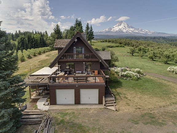 Ideally perched atop a hill, sweeping and breathtaking views of Mt Hood, Mt Adams, and the Valley surround this 3 bedroom/2.5 bathroom Chalet style home. Enjoy abundant privacy from the peaceful 4.99 acres- filled with manicured lawn & fruit trees. The home takes full advantage of the views with large decks located off the living room and the eating area. The lower level is perfect for guests with its own exterior entrance. A rare gem!