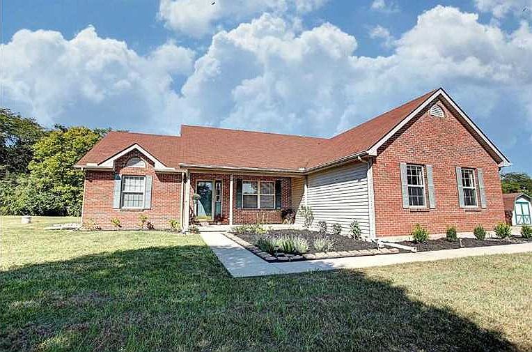 Newer country home with almost 3 acres. Very cute brick, vinyl ranch with split bedroom concept. Nice great room with vaulted ceiling that opens up to a spacious kitchen. Bedrooms are a good size. House has been newly painted. Master Bath has been totally remodeled with beautiful tile shower. New lighting. Beautiful pool area. Home backs up to a nice wooded area. Great find out in the country.