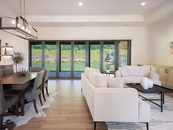This exquisite patio residence is designed with seamless flow between indoor and outdoor spaces. Step inside and discover heated floors throughout, 10' ceilings, 8' doors, and elegant upgraded trim work that adds a sophisticated touch. Natural light fills the home through oversized windows, and the show-stopping 21' accordion patio door. The chef’s kitchen features a massive 5' x 10' island, premium appliances, thoughtful and generous cabinetry, with a spacious walk-in pantry to meet all your culinary and storage needs. The primary suite is a private retreat, complete with a spa-inspired ensuite boasting a fully tiled walk-in shower, a tucked-away soaking tub, and a generous 8' x 14' walk-in closet. Completing the home's main level living is a dedicated office space, large mudroom with its own walk-in closet, and full laundry room with cabinetry, countertop workspace, and a sink. The gorgeous, light-filled staircase leads to 3 more bedrooms, each with walk-in closets. A well-appointed full bathroom with dual sinks and ample storage makes this area perfect for family or guests. Outside you'll enjoy the expansive 12' x 37' covered porch, complete with 4 power screen panels—perfect for bug-free lounging day or night. Customize the space with your choice of epoxy flooring for a polished finish. The beautifully landscaped backyard features a natural rock wall and mature trees, offering both functionality and privacy.