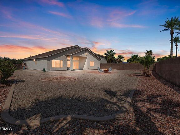 This home checks the boxes- huge lot, single story w rare 3 car garage, RV gate, split floor plan. Walk up to a nice front porch with clear views of the AZ Sunsets, enter into a large living room and than the kitchen which is open and bright w wonderful white cabinets and newer appliances, owners suite is on one side and 3 bedrooms and bathroom on the other side. Large laundry, huge backyard w 8' RV gate that can easily be made into a 10'' RV gate so all your toys can fit. Large 3 car garage w extra lighting added and space for work area. No home in front of you, no home behind you! Wonderful Fulton home!!