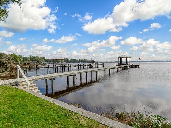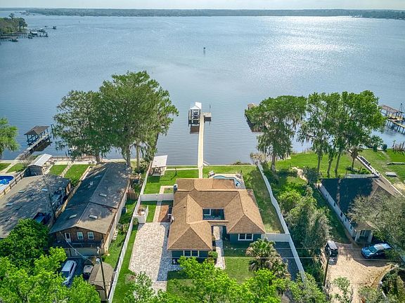 Boaters paradise! This pristine Doctor's Lake beauty with unique courtyard entryway, private dock, brand new 10k lb boat lift, inground saltwater pool, just to name a few. Imagine waking up every morning to this view? Step inside and take notice of the wood look style floors, wood beams, charming fireplace, and so much more! Gourmet kitchen is spacious and overlooks the rest of your home, boasting custom wood cabinets, granite countertops, and more. Bedroom wing offers your master with incredible views, massive walk-in closet and ensuite. Two additional guest bedrooms down the hall and full bath. Backyard oasis is where you'll spend your days feeling like you live on vacation! Meticulously kept with pavered pool deck, extended patio, everyone's favorite pool sun shelf for catching rays while you take in the beauty around you. Imagine your morning coffee on your favorite swing watching the sun rise! Need we say more? See you at the closing table, bring your swimsuit!