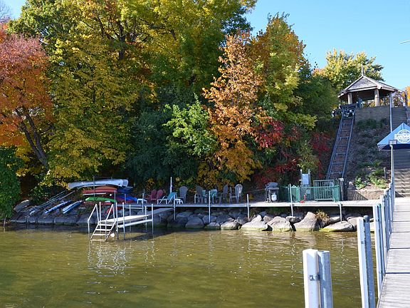 Deck in the treetops. Totally refreshed and move in ready with new carpet & paint, stainless appliances, A/C plus ceiling fans throughout & master with walk in closet. INCLUDES CARPORT. Boat slips available for rent. Roof deck (currently being renovated) over the party room, with one of the most spectacular water views on Minnetonka, Lakeside Gazebo & patio with 3 gas grills & another more private patio set into new boulder wall gardens, plus sundeck overlooks the marina. A lift takes you to another deck at the swim beach with its own grill and seating. Inside: 2 Heated Pools, 3 Saunas, Exercise Studio (new equipment), Basketball & Racquetball. Party Room with incredible water views, kitchenette, TV & wet bar. ASSN FEE INCLUDES: Heat, water/sewer, water heating & softening, cable TV, internet with router, building insurance (with deductible). Whether your lake cabin without the drive, or a place to call home, where else can you get this unique value?