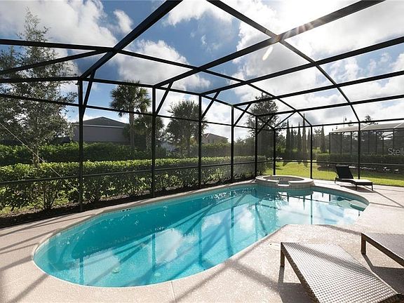 Exceptional 6 bed/5 bath pool home in a prime position opposite the clubhouse on the popular Solterra resort, 10 miles from Disney World. This beautiful home offers 2 lounge areas, a playroom, games room, private pool with spa (pool heater 2024, new pool pump September 2025) and no rear neighbors! Resort facilities include a pool with water slide, lazy river, tennis, gym, volleyball and more. The attractive open-plan living space features sofas, a Smart TV and views out to the beautiful private pool deck. The stylish kitchen is fully equipped including range, microwave (July 2024), dishwasher, fridge freezer (2024) and granite counters. There is a breakfast bar with stools and a formal dining area to seat 8 with sliding doors leading out to the pool deck. The pool deck offers a beautiful private pool and spa with a new pool heater installed in 2024 and a new pool pump in September 2025. The deck has loungers, a pool safety fence, shaded dining area with new comfortable seating and two new ceiling fans. At the front of the home is a den/office space that is currently utilized as a playroom with a sofa, Smart TV and toddler toys. Also on the lower floor are two beautifully decorated bedrooms: Bedroom 3 is a queen room with Smart TV. Bedroom 4 has a twin bed, a full bed and Smart TV. Located between these two bedrooms is a family bathroom with shower. Head upstairs to the spacious loft/second lounge space with a large Smart TV, sofas and an office area with desk and chairs. This stunning home offers 4 en suite bedrooms on the upper floor. The primary suite has a king bed, TV, sofa, large walk-in closet, additional closet and a huge en suite bathroom with walk-in shower, twin sinks, separate WC. Bedroom 2 has a king bed, Smart TV and an en suite bathroom with tub/shower. Bedroom 5 features a wall of professionally built and installed beds with a central staircase, offering four full-size beds. This room has a TV and an en suite bathroom with tub/shower. Bedroom 6 has a twin bed, a full bed, a Smart TV and en suite bathroom with shower. The garage has been converted into a stylish carpeted games room with air hockey, pool table and full-size table tennis topper, plus comfortable seating and color lighting. There is a laundry room with laundry chute, washer and dryer. At the front of the property is a driveway for two vehicles. The Solterra Resort clubhouse is directly opposite the home and offers amazing resort facilities including a beautiful communal pool, lazy river, poolside cafe, gym, tennis courts, volleyball and recreation areas. This luxury home is in an ideal location just 10 miles from Disney World, 19 miles to Universal, less than 3 miles to an array of restaurants at Champions Gate and 28 miles from Orlando International airport. It comes fully furnished and is an active and well-maintained short-term rental property, with an incredible eleven 5-star reviews on Vrbo, 95 reviews on Airbnb and the Seller has confirmed 2026 reservations that can convey to the new owner if they wish. This is the ideal property for a vacation home, short-term rental investment or a long-term resident.