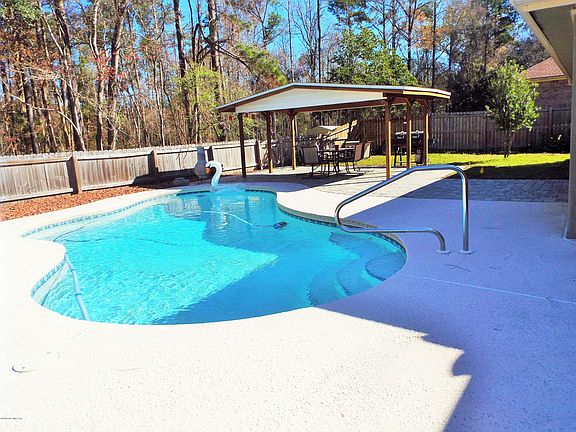 You must see your ''Creekside Oasis'' Your family and guests will enjoy your in-ground pool, covered picnic area, screened lanai in your partially fenced back yard, and water sports on Black Creek in this quiet neighborhood. This beautiful open floor plan home, features wood ceramic floors accentuating a spacious family room with a wood burning fireplace, updated kitchen with black stainless steel appliances and breakfast bar, formal dining room, and eat-in kitchen with bay window. The large master suite includes a walk-in-closet, updated master bath, door to pool from Master. The split floor plan features an updated second bathroom between 2 large bedrooms. Located close to Clay County schools, St. Vincent's Medical Center, churches, & more.. Near toll road from I-10 to Blanding Bl