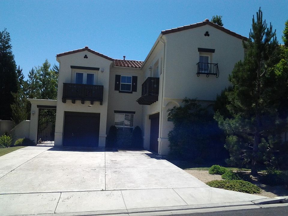 Two storey, 4 beds , 3.5 bath, high pitched (2 storey) living room with stairs leading up to loft huge master bed with balcony (fits table and chairs) and huge bathroom, huge walk in closet, large study (or 5th bed) and beds 2 and 3 and baths 2( jack & jill). Wine cellar is entered off the living room - downstairs bed 4 - bath 3 - family room - kitchen - laundry Neighborhood Description Excellent school, tennis courst and park - close proximity to the magnificient Sierras with easy access for hiking or off roading. Close to two country clubs. Easy access to all amenities including, freeways, down town and shopping