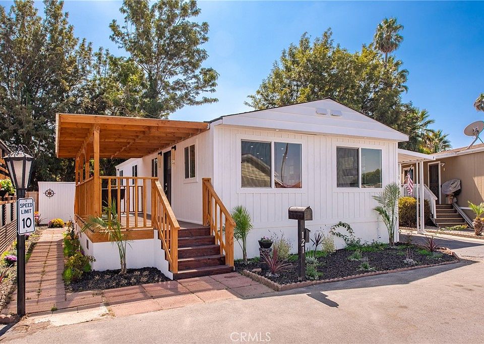 Exquisite 2-bedroom, 2-bathroom luxury living in the beautiful senior community of Casa Del Norte, located in the highly sought-after City of Camarillo, California. You are greeted onto the property with an indigenous perennial garden with a handcrafted deck, stained in honey gold and cherry oak — a perfect environment to unwind your day. Step inside to a bright, airy living space with a seamless open-concept layout, with white opaque doors and recessed lighting. The kitchen features black granite countertops, a moveable kitchen island, new kitchen cabinets, a stainless-steel sink with a sink system that allows you to cut vegetables, wash fruit, and dry your dishes at the same time. An extendable sink head pulls out and adjusts to a jet stream or a soothing shower for washing off the dishes. In the kitchen space, it has a laundry area for a stackable washer and dryer located behind an opaque door that blends perfectly.What we call our guest bathroom is like walking into a day spa. The floors have half-inch printed tiles from a Santa Barbara estate. The walls are clothed in ceramic tiles with an enclave to garage your bath amenities. The soak tub is just straight-up luxurious, with a Moen waterfall faucet that flows out of the wall. The matching sink vessel is made of porcelain with a stainless waterfall sink faucet. To top off the spa experience, we have added an oval touch mirror that has anti-fog and adjustable lighting. The second bedroom has a closet with twelve feet of hanging space, along with a built-in closet dresser and six-foot-six mirror slider doors. The master suite has two windows, a sizable closet, along with an exquisite bathroom with a custom double sink, two matching porcelain sink vessels, twin stainless waterfall sink faucets, a 63” x 20” touch mirror to adjust your lighting, and countertops with abalone and seashell speckles. The shower is something else — four jets and the rain shower that comes out of the ceiling is just mesmerizing. Casa Del Norte has a beautiful swimming pool, clubhouse, car wash, and RV storage for a nominal price.