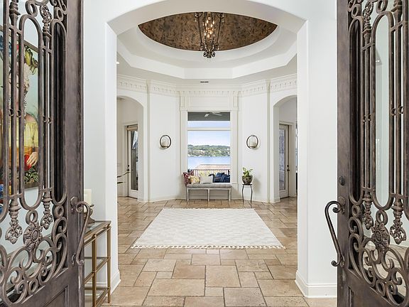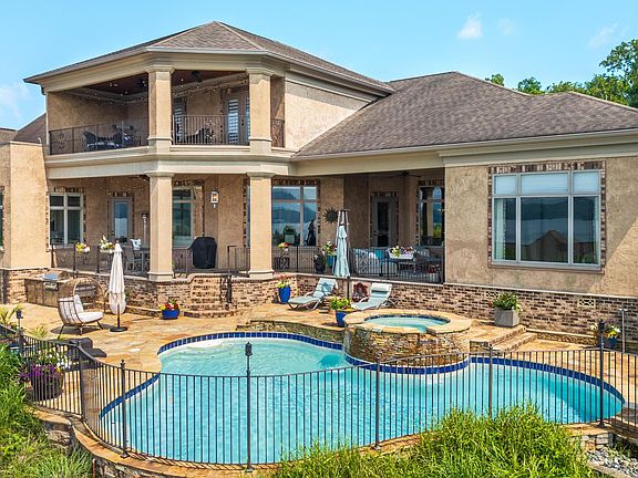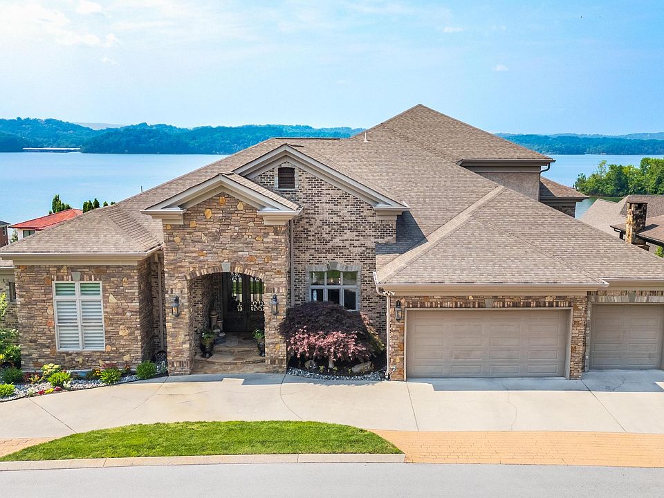 Step into a lifestyle defined by ease and unforgettable vistas. Perched above the big deep water of Chickamauga Lake, this masterfully designed five-bedroom, five-and-a-half-bath residence captures the essence of sophisticated living in one of Chattanooga's most coveted gated waterfront communities, Windward Pointe. Just twenty minutes from Scenic City downtown Chattanooga yet a world away tucked into this private and established Tennessee River enclave. With almost 5000 square feet of meticulously crafted interior space, 3400 of it on the main level! -and an additional 1,000+ square feet of covered outdoor living — every corner of this home is an invitation to relax, entertain or simply savor the good life. Expansive walls of glass pull in panoramic water views from nearly every angle. Step inside, where chiseled travertine tile and soaring 18 foot ceilings set the tone for a home steeped in refined detail, meaningful upgrades and well executed updates. The heart of the home is the great room -a spectacular gathering space open to the kitchen and wet bar with fireplace and large-scale windows leading out to the first of three covered patios all looking out to those stunning waterfront views. Imagine morning coffee on the terrace, the breeze off the river gently drifting in, or evenings spent unwinding in front of the fire as the sunset reflects off the water below. A spectacular outdoor space takes advantage of the view as well, with an outdoor kitchen, sparkling crystal clear pool, hot tub and extensive flagstone decking. The kitchen is a dream for the culinary enthusiast: furniture quality cabinetry, high-end appliances including a 48 inch Dacor gas range with double ovens and second prep space with wet bar. A casual dining space off the kitchen, bathed in natural light and framed by 180-degree views of the lake, makes every meal feel special. At the front of the home, a substantial formal dining room - filled with natural light. The main-level primary suite is a private retreat, designed to restore and inspire. Wake each morning to the quiet dance of herons over the river or soft sound of the waterfall from your private pool, through a full wall of windows. The spa-inspired en suite bath features dual vanities, a jetted soaking tub, and a generous walk-in shower, every element selected to elevate the everyday. A second bedroom reimagined just off the primary suite offers endless opportunity for use. Upstairs, two additional bedrooms with two full baths offer privacy and comfort, including a secluded sitting area or office and kitchenette-complete with stainless steel sink, microwave, compact refrigerator, and cabinetrymaking overnight stays both comfortable and convenient.. A broad driveway leads to a spacious three-car garage, offering seamless access for residents and guests. Impeccably maintained and move-in ready, this is a home that lives grandly yet intimately, balancing luxurious appointments with a deep sense of warmth and welcome. This is a place to build memories, to soak in the views that change with every season. Come stand on the terrace, breathe in the river air, and see for yourself. You just may never want to leave. Windward Pointe Showplace Home. No Place Like It!