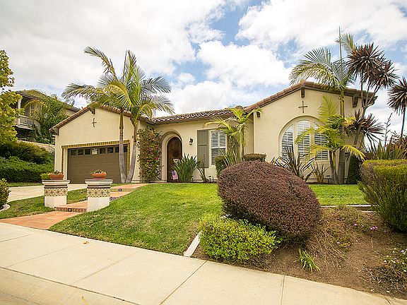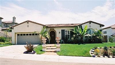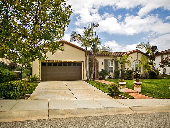 Welcome to this lovely, single-story 4 bedroom, 2.5 bath, 2666 square foot home in desirable Dos Vientos. You'll know this is the one you've been waiting for as you walk through the private courtyard entrance, through the rounded wood door, into this gorgeous home. You'll fall in love with the imported travertine floors, plantation shutters, 9' ceilings & dramatic archways. The gourmet eat-in kitchen boasts granite counters, custom cabinets, stainless steel appliances, butler's pantry & built-in desk. The adjacent family room has cozy, raised fireplace with mantle. The master bedroom has its own door to the backyard & large walk-in closet. The master bathroom has dual vanities, oversized soaking tub & shower with glass blocks. There are 3 nice-sized secondary bedrooms, all with recessed lights, carpet & shutters. 3-car garage with epoxy floors, recessed lights & extensive built-in cabinets. The private backyard has tiled patio, grassy area with play structure & dog run. Welcome Home!