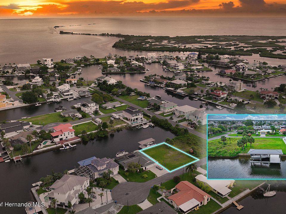 Introducing a rare opportunity to own a coveted westernly facing vacant waterfront lot in the DIRECT GULF ACCESS SECTION OF HERNANDO BEACH. This oversized prime lot features 80 feet of seawall, a 12'x36' covered 10k boat lift with durable Trex decking, boat box, and dock lighting. With power and water already on-site, this lot is ready for you to build your waterfront oasis or enjoy as a boater's retreat. Situated just minutes from the Gulf of Mexico, this location offers easy access to endless water adventures and breathtaking sunsets. All you need to do is come build your dream home! Hernando Beach is a one of kind community that is surrounded by the Weeki Wachee Preserve, has over half a dozen restaurants and shops that are all within walking distance. The world famous Weeki Wachee Springs and Weeki Wachee River are minutes away. Enjoy spending your weekends on the Hernando Beach ''Flats'' or a quick boat ride to Anclote or the Homosassa River to name a few quick destinations. Don't miss out on this amazing chance for waterfront living - call today for more information!