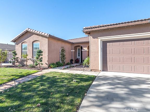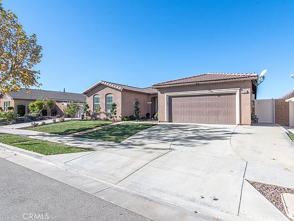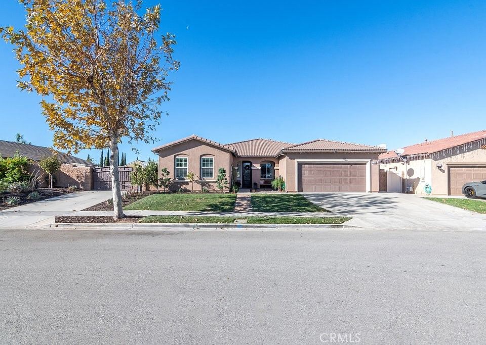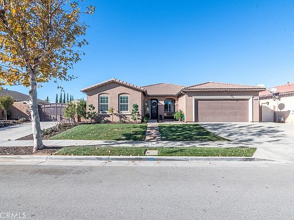Welcome home! This stunning, single story property is turn key and features the most incredible upgrades. As soon as you enter through the tranquil courtyard you can not help but be impressed by the oversized custom front door. The large, open floor plan is complete with tile flooring, a custom, neutral color pallet as well as tons of natural light from the large windows and overhead lighting. The windows are also fitted with shutters to control the amount of light coming through. The gourmet kitchen is complete with a large center island which can allow for plenty of seating. There are granite counters, dark wood cabinetry, stainless steel appliances and an ample amount of counter space. The bedrooms have new vinyl plank flooring installed and are spacious enough to accomadate large pieces of furniture. The primary suite is designed for added privacy as it is set further back from the other rooms. The flooring and paint design in this room are so relaxing, you will want to spend all of your time here. There is another hall bathroom and two more bedrooms on this side of the house as well. The opposite side of the property includes the 4th bedroom, the 3rd full bathroom as well as an additional area that can be utilized as an office space, entertainment area or another(5th) bedroom. Ideal for entertaining, there is also a sizable dining room with overhead lighting. To add to the appeal of this property even further, the park like backyard has everything you will ever need. Automatic, gated RV parking allows for storage of all your toys. There is also a sand play area as well as a garden complete with fruit trees and veggie plants. The shed which is present will also give plenty of storage space. The custom built patio houses a built in BBQ and will allow for as much seating as you need. Stay cool on those hot summer days with the overhead, outdoor fan. Other features include epoxy coated flooring and overhead storage in the garage which make this area clean and neat. The fully paid for Solar panels tremendously reduce if not eliminate the electric bill. For added security and convenience, there is a Vivant doorbell for remote monitoring, with cameras. Centrally located in the heart of Jurupa Valley, this home is close to the freeway, shopping, restaurants, the theater as well as the newer Cove Waterpark and the Jurupa Valley Sports Complex. This property truly boasts everything and will not last long.
