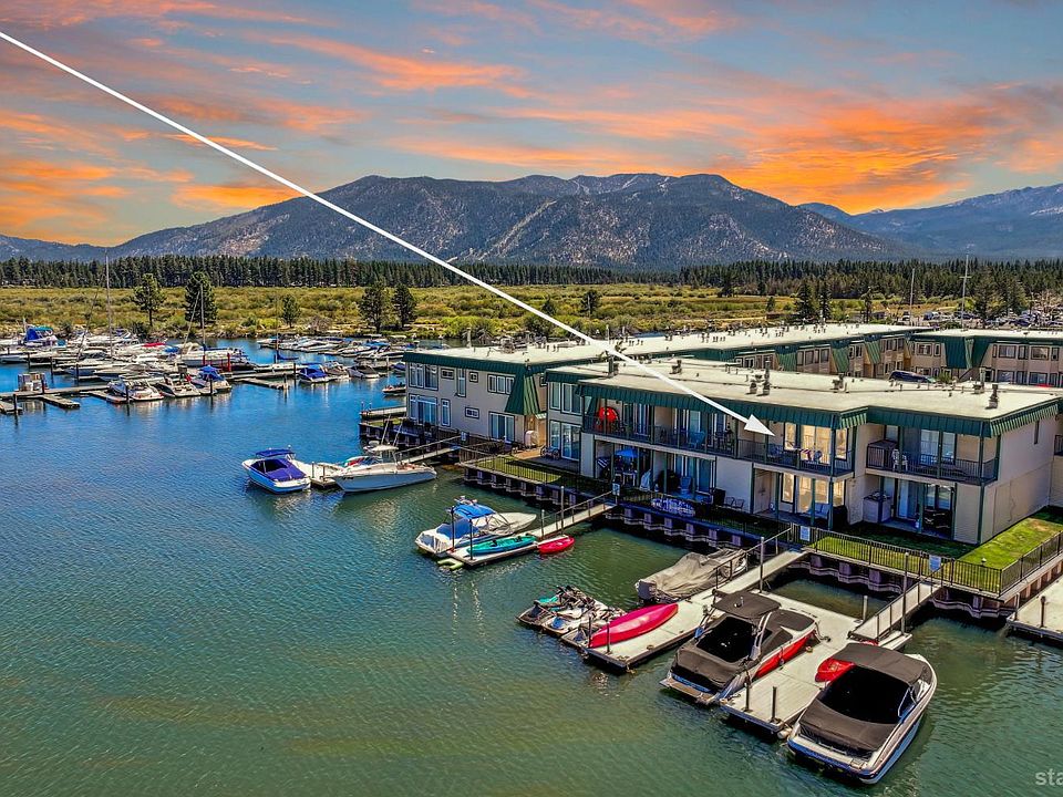 This is not just another Tahoe Keys townhome---it's arguably the finest ever offered. Positioned on the edge of the marina, this residence delivers rare, sweeping views of Lake Tahoe and Mt. Tallac from the back, and Heavenly's slopes from the front. From your door, it's only a short cruise to the lake, with effortless access to a private 30' boat slip that accommodates multiple vessels or toys. Add to that the planned full marina reconstruction in 2027, and the setting becomes even more compelling.- -Completely reimagined from top to bottom, the home showcases all new Andersen 100 Series windows with Hunter Douglas electric blinds, smooth level-5 walls, fresh paint, and wide-plank oak flooring throughout. The design embraces a coveted downstairs living layout, allowing you to walk directly from the front entry to the dock without a single stair.- -The kitchen is a showpiece---ceiling heights raised, recessed lighting, custom cabinetry, farmhouse sink, slab quartz counters, and premium appliances finished with brushed-gold accents. Steps away, a cedar-lined infrared sauna with custom glass doors is cleverly tucked under the staircase. The living area features painted open beams with pine tongue-and-groove detailing and a new granite-faced gas fireplace anchoring the room.- -A plush guest bedroom and an exquisitely remodeled bath complete the lower level, with touches that include shaker doors, contrasting black iron hardware, and a curbless custom-tiled shower. Upstairs, a hall laundry station and new tankless water heater serve two additional bedrooms. One is designed as a playful bunk/media retreat with built-ins, oversized screen, popcorn machine, and beanbags. The primary suite offers a second fireplace, spa-like bath with dual vanities and walk-in shower, and a private covered balcony with a gas firepit to frame dramatic Tahoe sunsets.- -Selling fully furnished with top-of-the-line pieces, this residence is simply unmatched. For its size, design, and finish quality, nothing compares---this is the best value in the Tahoe Keys today.