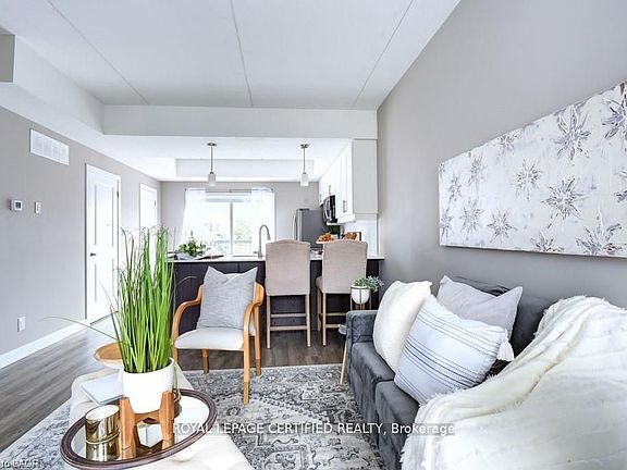 This 2 Bedroom, 3 Bathroom Stacked Town Home Is Move-In Ready. Perfect For 401 Or 403 Commuters And Is Also Close To Schools, Parks, And The Hospital. There Are Two Balconies On The Main Floor That Flood The Home With Natural Light. Open Concept Kitchen/Living With Quartz Counters, Stainless Appliances, Breakfast Bar, And Laundry Room. The Upper Level Bedrooms Both Have Their Own En-Suite Bathrooms, With The Primary Bedroom Having Its Own Private Balcony. This Townhome Comes With One Exclusive Parking Spot.