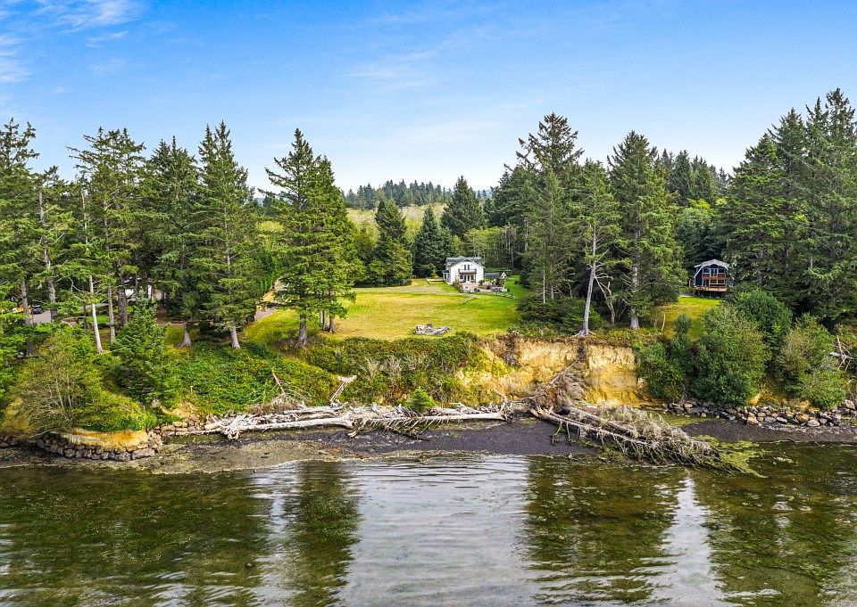 Private drive leading to 6.82 acres of bay front property w/majestic views!Upstairs has large living w/oversized bedroom,additional living space,&full spa bathroom. French doors open up to private balcony w/breathtaking views.Open concept on main w/cozy wood stove& full bath!French doors lead out to large entertaining oasis w/gazebo&garden space!Deck leads to the water & private beach.Attached garage w/ample storage & custom built-ins.3 bedroom Septic. Space to continue building your dream home!