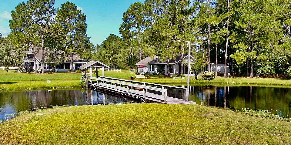 Come live your best life!! Relax on the front porch of this great home, fish in the pond in the back stocked with fish and entertain in the open spaces of the main house. The guest house is ready for ready for the family to come stay but given them their own privacy. The main house was designed to bring the breathtaking views inside. The sunroom and dining room have great views of the pond and island. Natural light flows through the house, with the open floor plan. The upstairs bedrooms are very nice sized and have lots of storage and a great screen porch and outside stairway. The guest house is set with kitchen appliances and has its own screen room right beside the pond. The private location of this property is hard to find, with woodlands surrounding the property.