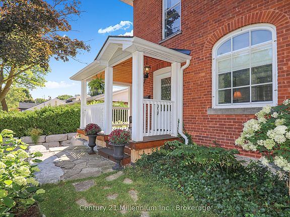 Charming Brick Home on Coveted Tree street in Downtown Collingwood! Located on a desirable corner lot, this gem features a rare in-law suite complete with a full kitchen and bath - ideal for extended family or guests. Step inside and be greeted by original craftsmanship and thoughtful updates throughout. The heart of the home has a bright, sun-filled kitchen, featuring stainless steel appliances, a central island, and pot lighting, with direct access to the welcoming front porch - perfect for morning coffee. The formal dining room, framed by original wood pocket doors, offers an elegant space for entertaining, while the cozy living room is anchored by a Regency gas fireplace. Upstairs, you'll find three generously sized bedrooms, a full bath, and a convenient, second laundry area. A spray-foam insulated third floor provides added versatility, currently set up as a family room, bedroom, and office. Built with care and quality, the 22 x 22 insulated double car garage includes its own electrical panel and sits beneath the spacious in-law suite, offering flexible living arrangement or income potential. With two driveways and parking for up to five vehicles, space is never an issue. This home also comes with a fenced backyard and 8 x 12 BC Greenhouse with double insulated glass, garden beds and lush landscaping. This is more than just a house - it's a warm, welcoming home full of history, character, modern comfort in one of Collingwood's most sought-after neighborhoods. A rare opportunity that's truly a pleasure to view and a delight to own!