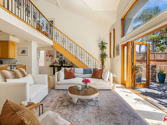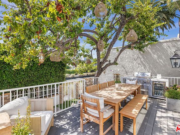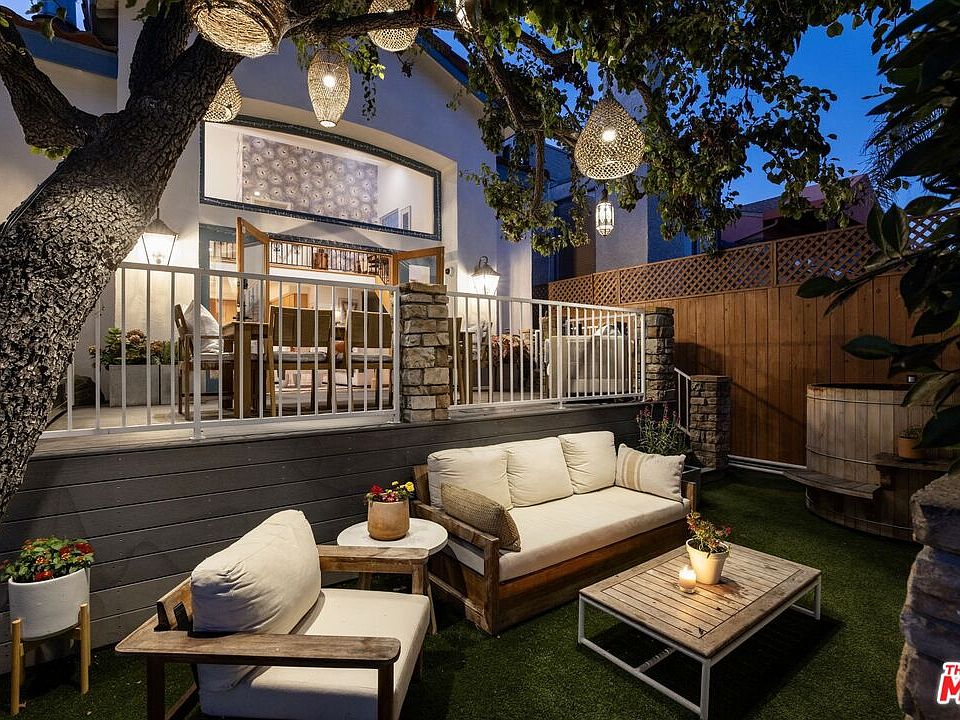 Welcome to 439 Carroll Canal, a stylish contemporary Mediterranean home with exceptional design and a multitude of updates set on the iconic Venice Canals. Featuring an open floor plan, expansive windows, and vaulted ceilings, the interiors are filled with natural light and flow seamlessly between the living, dining, and kitchen areas. The chef's kitchen with bar seating is designed for both casual gatherings and effortless entertaining, while the living room is anchored by a chic stone-surround fireplace and opens through French doors to a spacious deck with a recently installed gourmet BBQ, perfect for outdoor dining. Upstairs, two grand bedrooms each offer recently updated luxurious en-suite bathrooms and walk-in closets. A light-filled loft perched above the living room provides the perfect setting for a home office or lounge space. Outdoor living is highlighted by a two-tiered yard with the large main deck and a lower-level retreat space featuring upgraded turf. Unwind in the soothing cedar soaking tub, also one of the many newer upgrades. At night, twinkling pendant lights strung through canopy trees illuminate the grounds, creating a romantic and enchanting atmosphere. A dock with a pontoon-style boat completes the ultimate canal lifestyle. With a two-car garage plus parking for two additional vehicles, the home offers rare convenience in the canals. Its north-side location maximizes walkability to shops, restaurants, and the vibrant energy of Abbot Kinney.