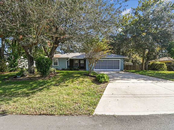 Discover easy living in this inviting Saint Augustine South home. This 3-bedroom, 2-bath residence offers a spacious open-plan living area centered around a cozy wood-burning fireplace, complemented by durable vinyl flooring for low-maintenance living. The well-appointed kitchen overlooks the living space and features a large pantry and a stylish breakfast bar, perfect for casual dining. The owner’s suite is generously sized and includes an attached bath and a walk-in closet for ample storage. Two well-sized guest rooms are thoughtfully positioned near the main bathroom. Enjoy relaxation and outdoor views from the large screened rear lanai overlooking the tranquil backyard. Additional highlights include a separate shed, newer roof(2023), updated plumbing (2020) and newer A/C, and hurricane shutters for peace of mind. St. Augustine South also has two boat ramps for your convenience. This home blends comfort, practicality, and Florida lifestyle in a desirable non HOA neighborhood. With some updating this home could be really nice!
