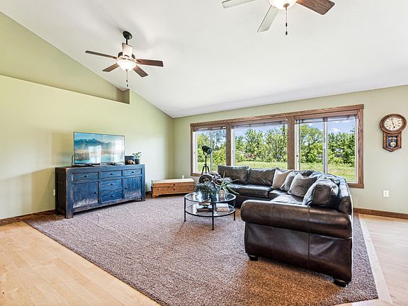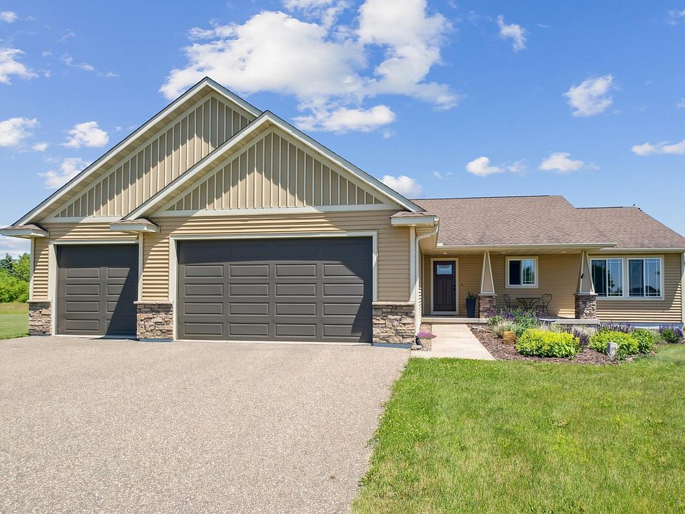 Charming 3-bedroom, 2-bathroom home situated on 1.19 acres in a great location, just south of Hudson, WI. This home features a spacious master bedroom with a private ensuite bathroom, and an inviting open front porch. It has a wonderful open concept living space with living room, kitchen, and dining areas, plus lots of kitchen storage. Enjoy the expansive garden space, perfect for outdoor enthusiasts and gardening lovers. This is a serene retreat with the convenience of nearby Hudson amenities.