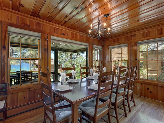 Classic "Old Tahoe Style" home located right across the street from the lake. Listen to the waves and gaze into the clear blue water from the covered front porch while only steps to the private homeowner beach and marina. The knotty pine interior throughout along with the indigenous old stone fireplace gives you the warm, nostalgic feel of being "back in the day" of old-time Lake Tahoe. Other features include three master suites, a 400 sq ft family room/basement, new roof and exterior paint. Remodeled kitchen, 2 bathrooms, master BR, and laundry April 2016.