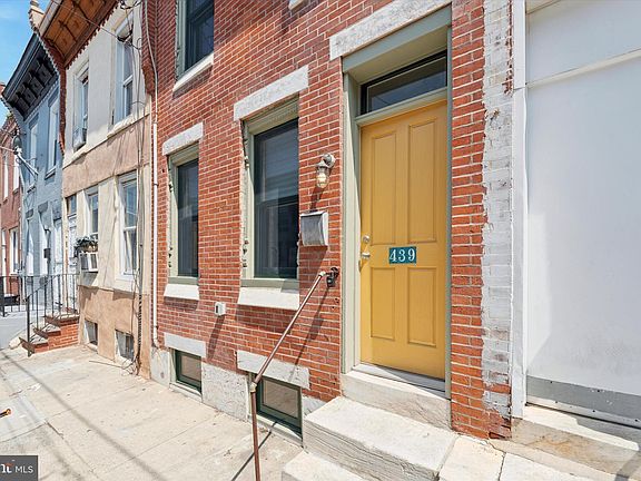 This beautifully renovated house on a quiet little block has charm and style packed into every square inch. It’s got contemporary finishes in the kitchen and bathroom, while its old-house soul shines through via random-width pine floors, much of the original trim, and a mix of vintage and repro light fixtures by Schoolhouse Electric. The simply gorgeous restored brick and marble facade with original detailed cornice has a fun industrial-cool sconce and vintage-inspired teal ceramic house numbers on the yellow door. Custom charm continues in the vestibule entrance with two transom windows and wainscoting made from salvaged school gym flooring. The bright and breezy open-plan first floor has ample room for both a dedicated living space that has two large front windows and a dining area with a rear window and Muuto pendant light fixture. The kitchen has an ultra-functional galley layout with white Ultracraft flat-front cabinets with maple open shelving, light gray subway tile backsplash, white quartz countertops, undermount Blanco Caesarstone sink with Grohe pulldown faucet, and stainless steel appliances including a French door fridge by Haier, dishwasher and five-burner range by Whirlpool and a Frigidaire microwave. Anderson French doors open to the big-for-South-Philly patio with plenty of room for grilling and dining, privacy fencing and an L shape to hide away the AC condenser and trash cans. Upstairs the large front bedroom has two big south-facing windows and two closets. The rear bedroom has a window overlooking the rear yard, and just outside the door to this bedroom is a sweet den with a window. With a laundry closet with Whirlpool HE stacked washer and dryer plus another large closet, it’s a great candidate for a dressing room. The bedrooms have vintage light fixtures and share access to a hall closet and super-stylish bathroom with a pocket door and skylight. The hand-picked finishes here include Grohe hardware, NOGA blue and white Moroccan mosaic cement tile floor; Nameeks wall-mounted sink, and a step-in shower with full-wall oversize subway surround and Caesarstone bench. With laundry in the den, the basement is free for storage. This ultra-convenient section of South Philly is an easy walk to Dickinson Square Park, which hosts a weekly farmer’s market and summer movie and music events, and has an ever-growing number of surrounding cafes. Bok and East Passyunk plus big-box shopping and I-95 are super close by as well.