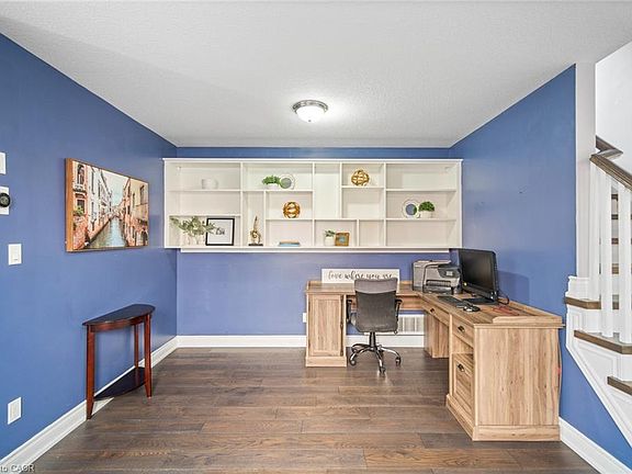 Welcome To 439 Moorlands Crescent, A Beautifully Designed Detached Home Nestled In One Of Kitcheners Most Sought-After Communities. Offering Over 2,500 Sq.Ft. Of Finished Living Space, This 4+1 Bedroom, 3.5 Bathroom Home Perfectly Blends Comfort, Functionality, And Style. The Property Features A One-Car Garage With A Concrete Driveway Providing Parking For Two Additional Vehicles. Step Inside To A Spacious Foyer That Opens To A Dedicated Main Floor Office Complete With Built-In BookshelvesAn Ideal Space For Remote Work. The Main Level Boasts Engineered Hardwood Flooring Throughout, An Open-Concept Living Room, And A Bright Eat-In Kitchen Featuring Granite Countertops, Built-In Appliances, A Large Sit-Up Peninsula, And A Generous Pantry. The Breakfast Area Walks Out To A Fully Fenced Backyard With A Concrete Patio And Garden ShedPerfect For Summer Entertaining. Conveniently Located Off The Kitchen Is A Mudroom With Garage Access, Along With A 2-Piece Powder Room Finishing Off The Main Floor. Upstairs, The Spacious Primary Suite Offers A Custom Walk-In Closet And A Spa-Inspired 5-Piece Ensuite With A Corner Tub, Double Vanity, And Glass Shower. Three Additional Bedrooms And A Full 4-Piece Bathroom Provide Ample Room For The Whole Family. The Finished Basement Includes A Large Recreation Room With Plush Broadloom, Pot Lights, Large Windows, A Fifth Bedroom, And A 3-Piece Bathroom. Close To Schools, Parks, Shopping, Highway Access, And Short Commute To The University Of WaterlooThis Home Checks All The Boxes. Dont Miss Your Opportunity To Call It Yours!
