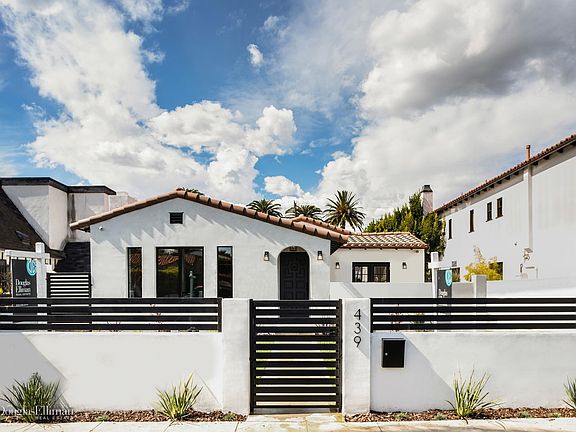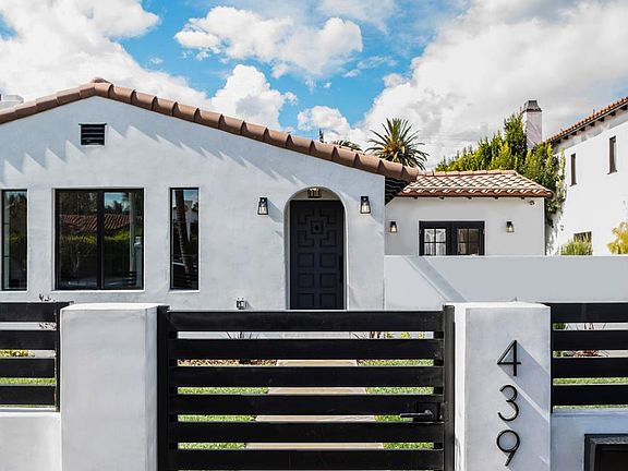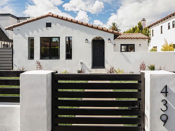 MOVE-IN READY Sophisticated, charming, modern Spanish home nestled in the heart of Beverly Grove! Close to shops/restaurants, this home exemplifies luxury, entertainment & technology. Original 1930's Front Door opens to sleek White Oak wood flooring w LED recessed lights, 4-pane glass doors and the kitchen WOWS with Viking Appliances, 10' island & Carrara marble backsplash. RELAX in your Master bath featuring dual showers w skylight, soak tub & Carrara Marble tiling. Entertain guests in the front patio w gas fire pit & VSSL wi-fi speaker controls w 10 ceiling speakers & Bose outdoor speakers. Security includes motored driveway gate, Nest doorbell & 4 cameras. Further upgrades: 100% electrical, plumbing, HVAC & Spanish tile roof. Detached garage could be used as studio/office - upgraded w insulation, speakers, EV charge ready & custom wood carriage doors.*Total sqft includes Garage (apx.359sf) & House (apx.2300sf). Buyer to verify all permits & accuracy of all information.