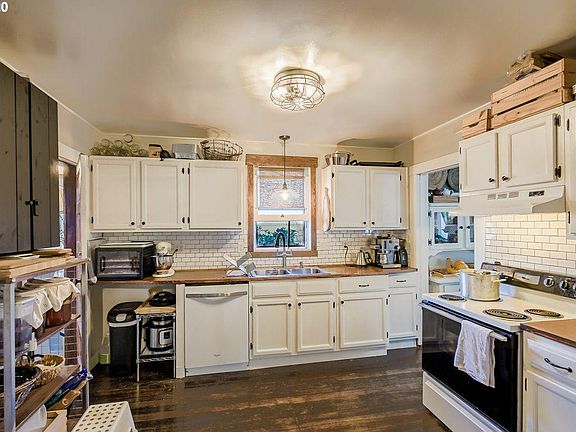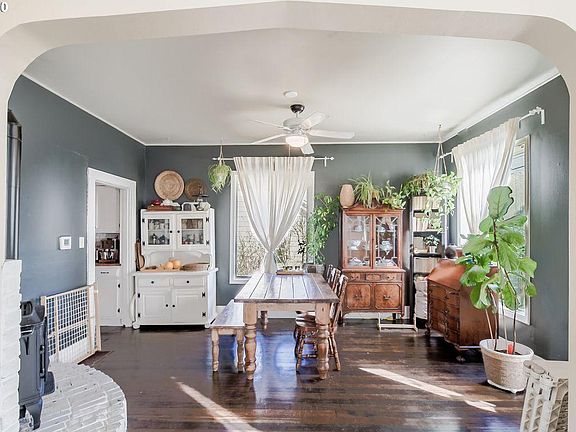 Best Value in Oregon City! Cute Bungalow with Master Bedroom on Main Level with private bath. Nice sized Dining Room, Kitchen with lots of storage and Living Room on Main Level with Wood Floors. Preserved 1920's look with some updated Vinyl Windows, and Air Conditioning. 2nd Full Bath on Main Level too. Upstairs has two additional bedrooms. Fenced Back Yard with Raised Beds, Room for Outdoor Fires, and your own Poultry Coup. Covered off street parking in the front. Close to Bus Line/Shopping.