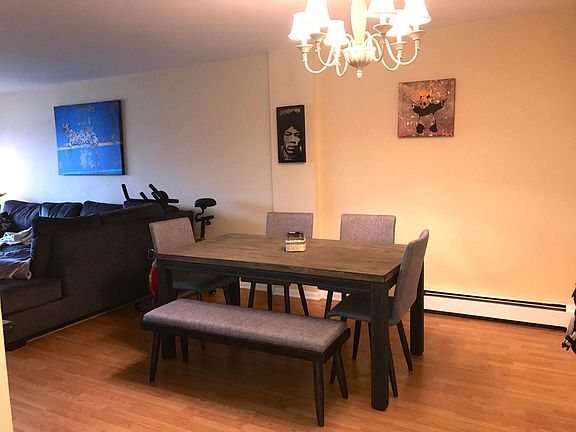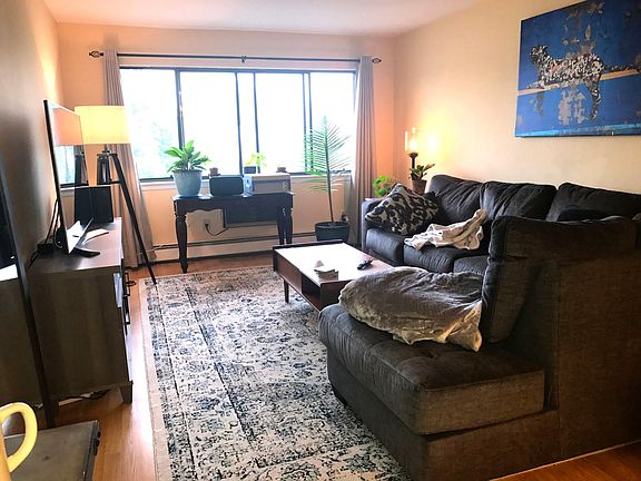 Heat and hot water included. Modern, 1st floor condo with living room, dining room, modern kitchen, tile bath and master bedroom. Refrigerator,dishwasher, microwave and air conditioning. Coin operated laundry in building. 2 parking spaces (one is in parking garage).Great for the commuter - walk to train and bus! Owner pays heat and hot water, tenant pays gas and electric