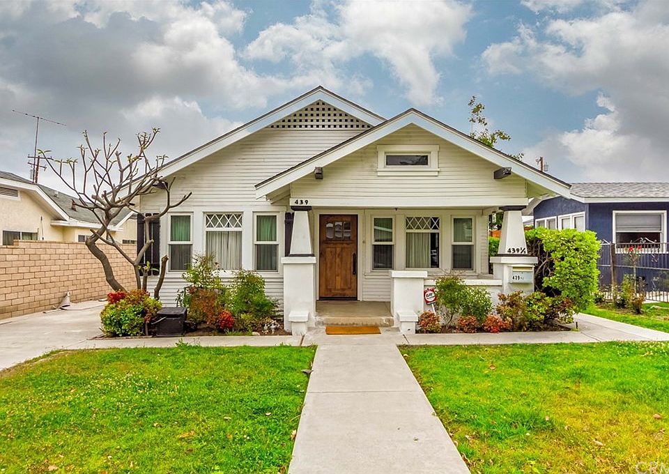 A must-see property! This Beautiful Craftsman home located in Brea, walking distance to downtown and community shopping. Loaded with lots of charm & character, original hardwood floors, some original windows and built in cabinetry. Front house features 3 bedrooms, 2 full bathrooms. Master bedroom is spacious with its own walk-in closet, French doors leading to private patio area, and attached master bathroom boasting a jacuzzi tub, double head shower and double sinks. Natural stone flooring and slate shower area, along with recessed lighting. Living room area opens into dining room. Upgraded kitchen with stone tile flooring, recessed lighting and beautiful glass front cabinet doors. Guest home is one of a kind built in 2007 by architect Jay Kaufman is an additional 1,150 square feet of living space with 1 bedroom and 1 full bathroom. Currently being used a recording studio, all walls double sound proof covered in acoustic fabric, wood flooring, recessed lighting, private full bathroom with slate flooring. Spiral stair case leading up to loft with beamed ceilings and spacious beamed ceiling bedroom currently being used as a lounge. Over $350,000.00 in back structure alone. Back home has separate entry and is very private. Lush back patio is perfect for relaxing with brick inlay, fruit trees, privacy fence and turf area. Talk about attention to detail! All this and more including great school dist. Come See Today!