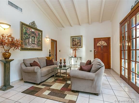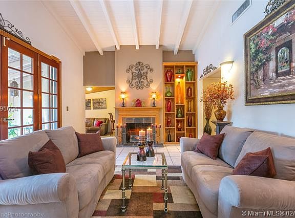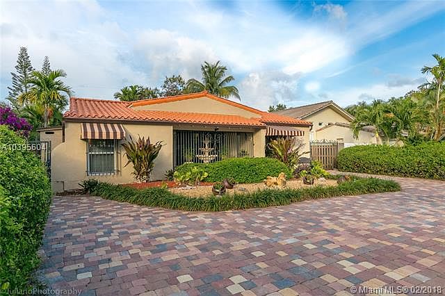Enjoy tropical living in this meticulously kept home in The Roads. This home has many great features including updated kitchen and baths, family room and vaulted, exposed beam ceiling in the living room. The opulent master suite has a seating area, wall to wall closet and overlooks the lavishly planted patio and yard. The second and third bedrooms are oversized and have huge, walk-in closets. This home is tiled throughout. Outside you will experience quiet evenings on your very own roof top sundeck, a barbecue area with small refrigerator, a wood deck with built in seating and a wonderful water feature; all kept private by a wood fence. Other upgrades include impact windows, a tank-less water heater, half-bath outside, stainless steel appliances and circular driveway with pavers.