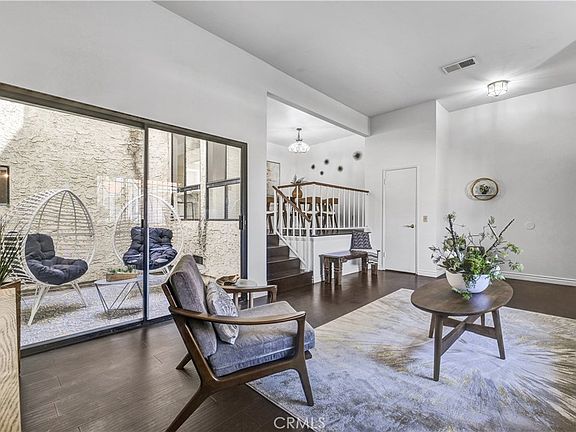 A very comfortable townhouse style condo over 1,700 sq ft facing north with view to the mountains comes with a large living room, atrium, a step up formal dining room, very spacious family room with open kitchen and breakfast nook plus a powder room for guests. Tons of natural lights. The top floor has 2 bedrooms sharing a full bath, a primary bedroom comes with its own full bath, double sinks, sitting area, walk-in closet and a balcony to look out. Freshly painted interior, rich dark laminated wood floor, attached 2 car garage with laundry hookups. Low HOA $215/m, blue ribbon elementary school and Mark Keppel High school.