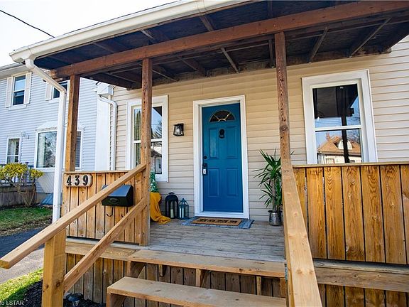 Welcome to 439 Spruce Street, the cutest east end bungalow! Located on a dead end street close to all amenities, schools and parks. This gorgeous home offers 2 bedrooms, 1 bath and has been transformed and is ready for its next owner to enjoy. Brand new flooring throughout, updated bathroom, kitchen, newer fridge and BRAND NEW gas stove, chic new lighting in all rooms, fresh crisp white paint throughout, newer furnace, newer roof and vinyl windows. The dining room features an electric fireplace and walkout to the back deck and patio space. The backyard is huge and fully fenced, ready for you to enjoy this summer! Downstairs you will find a full height, unfinished basement, perfect to set up a workshop area and ample storage space. This is THE perfect starter home for a new buyer, or place to downsize (think condo alternative) but still have a sizable private yard to enjoy.