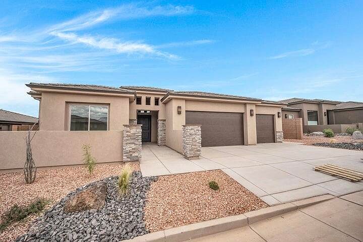 This spacious single family home is located in the serene desert setting of Mojave Mesa in Ivins. This floor plan is a favorite because if it's functional floor plan! White Oak Cabinets with Calico Quartz Kitchen Countertops and Wood Plank Tile are just some of the features of this beautiful home. Beautiful front landscaping curb appeal with a large laundry, pantry, huge closets, large kitchen and storage of the large covered patio that's perfect for outdoor living!