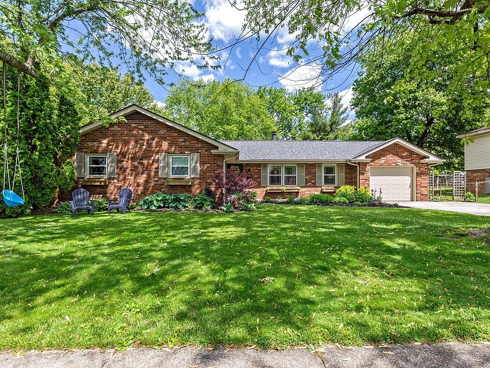 This impeccably maintained, move-in ready all brick ranch offers modern finishes with 1960's charm. Tucked away on a quiet street, this home is just blocks from parks, shopping, & dining. NEW roof, newer furnace, and expertly updated in all the right places. The kitchen has been beautifully remodeled with new cabinetry, stainless appliances, butcher block countertops, and a tile backsplash. The spacious dining room is open to the kitchen, and features board & batten walls and french doors providing easy access to the backyard. In the living room, you'll find built-in bookshelves, a beautiful fireplace with ornate trim, and hardwood flooring that extends to all of the bedrooms. Both bathrooms have been fully renovated, including a handmade maple vanity in the guest bath. The primary suite features a tile shower & a huge walk-in closet. The sunny laundry room has its own backyard access and, as an added bonus, the high efficiency washer & dryer stay with the house. Outside, you'll find a perfectly flat, fenced yard with a large deck, storage shed, & thoughtful landscaping. Your own private oasis! Great curb appeal with mature trees & darling window boxes. Schedule your showing today!