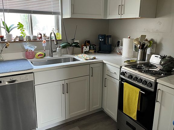 Cozy and updated, this gem is filled with natural light, hardwood flooring, and modern amenities. The kitchen boasts a stove and dishwasher, ideal for hosting or cooking at home. Save time with on-site laundry. Off-street parking provides convenience and peace of mind.