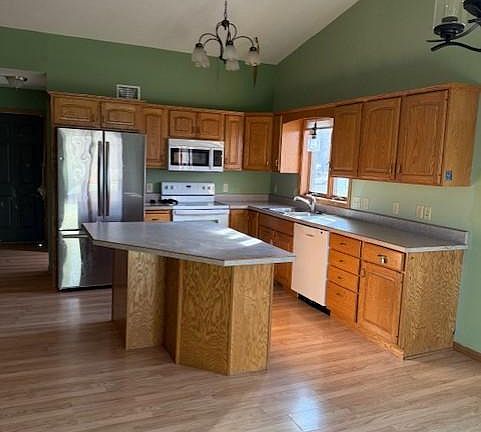 Twin home on large lot with no association fees. Walkout lower level to fenced in backyard. Lower level has infloor heat. Newer furnace and water heater. New stove, microwave and dishwasher. A coat of fresh paint will spruce up this gem.