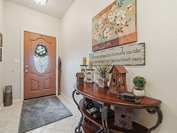 This charming country home, located near Lake Camanche and Lake Hogan, perfect for water sports enthusiasts. The open floor plan features a spacious kitchen with granite tile counters, a center island, and plenty of counter space. The large master suite is located upstairs and includes a jetted tub, separate tile shower, and scenic views. Dual-zone climate control ensures comfort on both levels. The living room is cozy with a corner fireplace and French doors that open to a covered patio, ideal for indoor-outdoor living. The backyard is a blank canvas, ready for your personal touch. This home offers flexibility with a den downstairs that includes a closet. Close to lakeside recreation and situated in a peaceful setting, this home is meticulously maintained and ready for new owners.