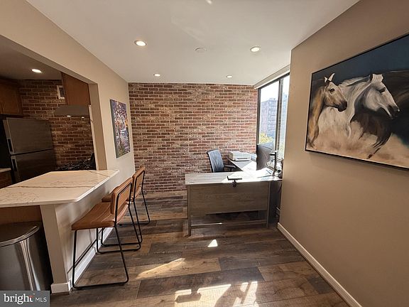 Welcome to Carlyn Place, Arlington’s Coveted Gem! Step into this fully renovated one-bedroom, one-bath home, perfectly situated in one of Arlington County’s most sought-after neighborhoods. Every detail has been thoughtfully curated with custom finishes that set this residence apart. From the moment you enter, you’ll notice the craftsmanship: all new custom doors with designer hardware, recessed lighting throughout, and luxury vinyl plank flooring that flows seamlessly from room to room. The freshly painted interiors are complemented by stunning feature walls, exposed brick accents in the living spaces and a custom patterned wall in the bedroom, adding warmth and character. The spacious primary suite easily accommodates a king-size bed and boasts large, custom-designed closets for exceptional storage. The bathroom is a spa-inspired retreat, fully updated with custom cabinetry, a quartz vanity, an oversized walk-in shower, and modern designer tiling. The chef’s kitchen impresses with stainless steel appliances, quartz countertops, a matching quartz backsplash, and a striking brick feature wall. Just beyond, back double-doors lead to a private, covered balcony, perfect for enjoying year-round indoor/outdoor living. This home is more than a residence, it’s part of a vibrant, welcoming community. Carlyn Place is known for its tree-lined streets, friendly neighbors, and access to Arlington’s top-rated schools, making it one of the most desirable addresses in Northern Virginia. Don’t miss the opportunity to own a truly unique home in an unbeatable location!