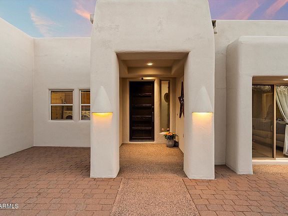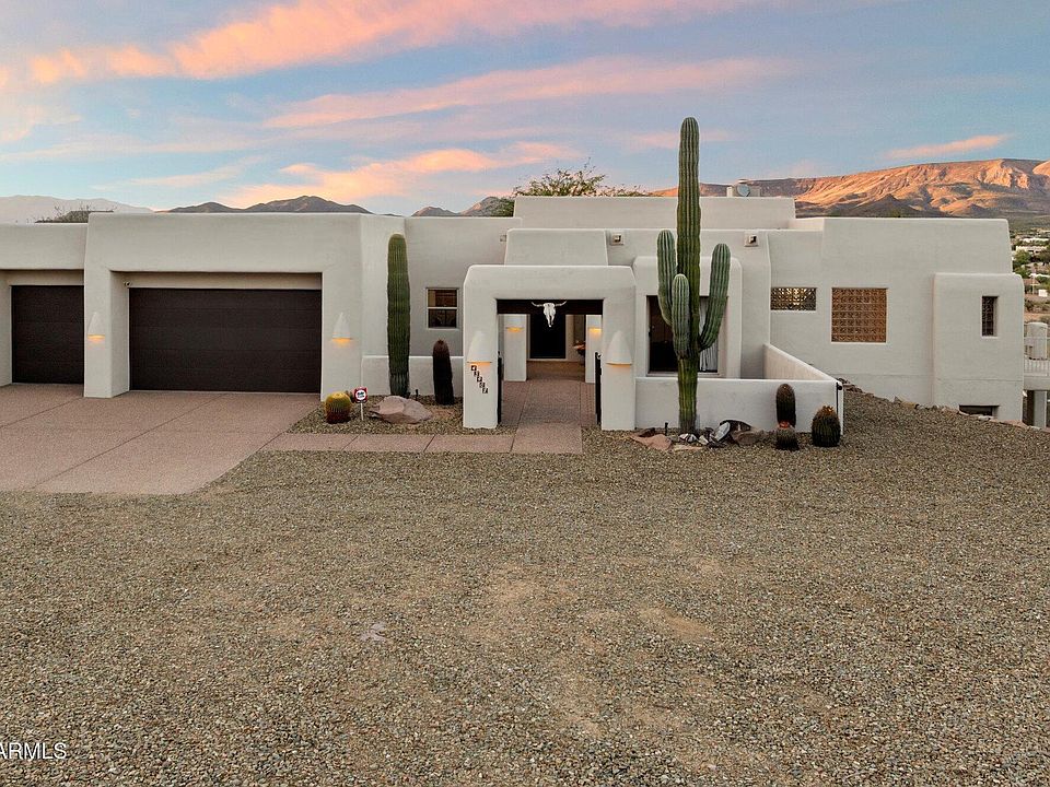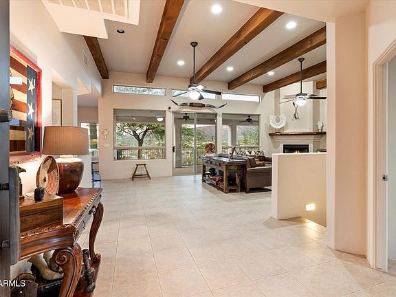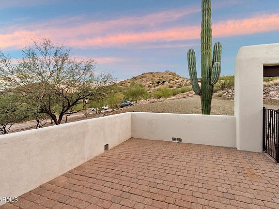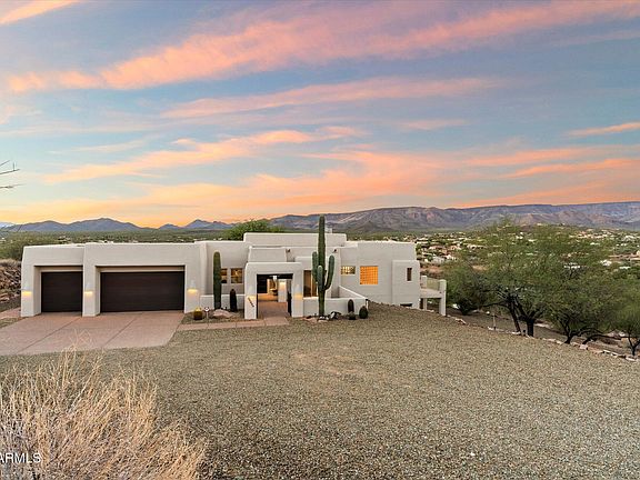 Perched high in the hillside with sweeping desert and mountain views, this stunning contemporary residence blends privacy, serenity, and Southwest elegance. Expansive patios and view decks capture breathtaking sunsets, while the outdoor firepit invite relaxation under Arizona's star-filled skies. Inside, soaring ceilings with exposed beams, a warm fireplace, and large windows frame the scenery, creating a seamless indoor-outdoor living experience. The gourmet kitchen with custom cabinetry and the spacious owner's suite with private balcony access make everyday living feel like a retreat. A 3-car garage and generous layout provide both comfort and functionality—all surrounded by the beauty of the natural desert landscape.