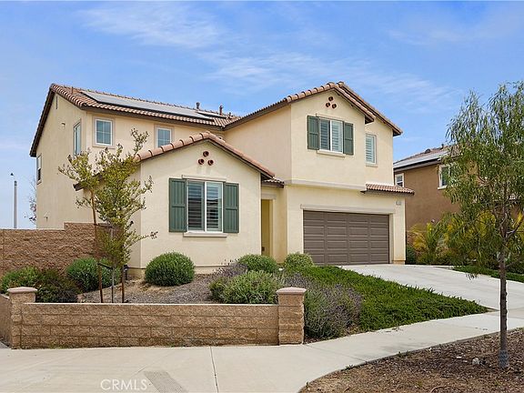 Welcome to the beautiful community of Rivera located in the City of Riverside. This corner lot property delivers from start to finish. The upgraded kitchen provides an abundance of cabinetry, walk in pantry, granite countertops, main island, and overlooks the dining room and oversized living room. The downstairs bedroom and full bath are perfect for guests or family members looking for space and privacy. Tall ceilings and upgraded window coverings are installed throughout the home making the already large space feel even more open. Upstairs you will find a large bonus room, and 3 more bedrooms. The main bedroom is large and is a personal getaway offering a main bathroom and walk in closet. Two other guest bedrooms, full bath and laundry room are also upstairs. The backyard has been upgraded with a stacked stone patio with seating area and low maintenance grounds. A paid for solar system and tankless water heater are both installed for optimum utility efficiency. This community is located close to the University of California Riverside as well as the 91, 60, and 215 freeways.