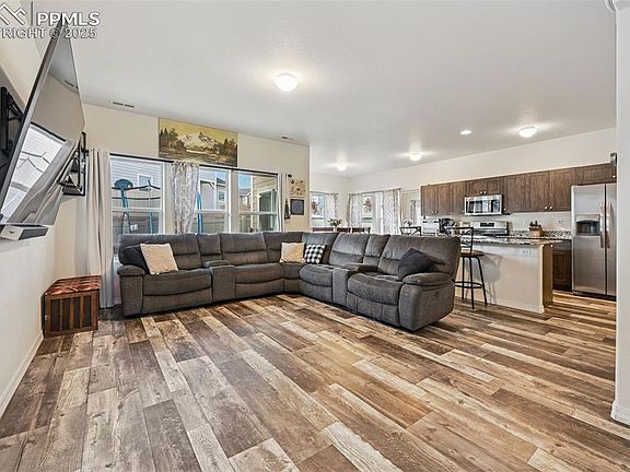 Beautiful home on the east side of Colorado Springs with COVERED BACK PATIO. This home has it all as you walk into the main floor their is a half bath just to the right of the entry before the stairs to the upper level. Through the entry the home opens up into an incredible open floor plan with the living and kitchen area flowing seamlessly together. The main floor windows let natural light stream throughout the space. The kitchen impresses with a barstool height center island, stainless steel appliances, and a gas range. The informal dining area is adjacent and provides walk-out access to the covered back patio and fenced back yard. The covered patio is the perfect space to sip coffee on gorgeous Colorado mornings. The upper level walk up to a spacious loft that can be utilized as a game/play room, at home office, workout area, media/TV room, or any number of possibilities. The upper level has all three bedrooms including the primary suite with ensuite 3/4 bath featuring a standalone shower, double vanity, and large walk-in closet. Bedrooms two and three share a full bath. The home is in a great community just a short distance from all the Powers corridor has to offer. From incredible places to eat, to the movie theater, Sky Sox Stadium, Villa Sport, and many more this home is ideally located.