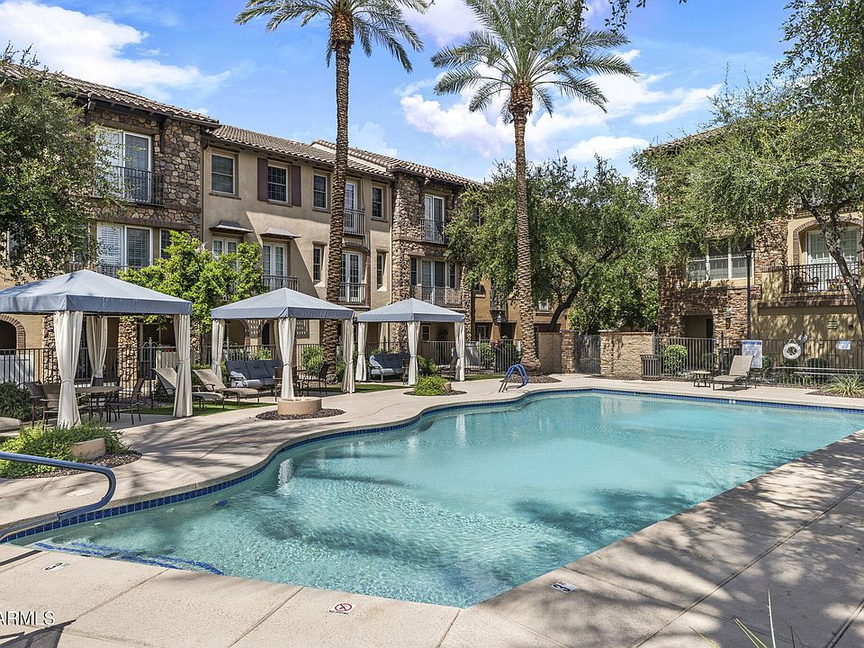 Why settle for boring architecture & finishes when a timeless community w/style & class can welcome you to your ''dream-come-true'' resort-style living at the perfectly located Biltmore Jewel. This tastefully updated pristine/like new 2 bedroom, 2.5 bathroom + den ~1800 sq ft townhome has the best views in the complex, overlooking Camelback Mtn & the cabana-lined pool/spa/BBQ areas.It boasts a large office/flex room, wood floors, tons of storage, soft water system & RO tap in the kitchen.Spacious primary provides ample room to enjoy your views. Nestled on a quiet street, but close to everything w/quick access to the 51, 10, & 202. Enjoy walking & biking to Los Olivos Park, Postino's, LGO, Chop Shop, Biltmore Mall, w/nearby hospitals & all the amenities Biltmore/Arcadia areas have to offer