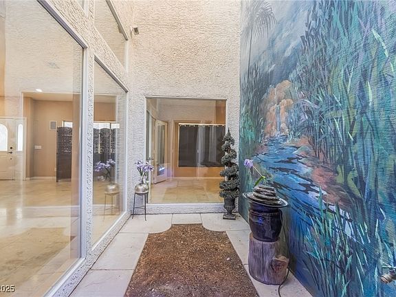Updated pool and spaSpacious open layoutWaterfall featureCovered patioFloor-to-ceiling skylightLush grassSoaring high ceilings