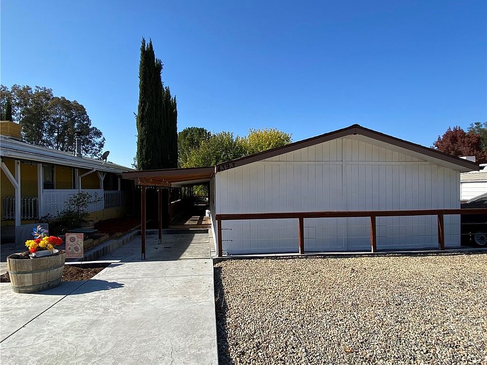 ***CALLING ALL CONTRACTORS OR INVESTORS ** HUGE PRICE DROP. Located in desirable Heritage Ranch. THE HOME NEEDS TLC and is being sold AS-IS. IT'S LAND OWNED Two bedroom/two full baths, a family room, with 1440 sq ft of living space. Step into the spacious living room with vaulted ceilings, wood stove, & lots of windows, open dinning area, with a wet bar. Master bedroom is large with a large closet with mirror doors. 2nd bedroom is conveniently connected to an updated full bath. This home features central heating & air conditioning. A wrap around deck great for entertaining.Plenty of parking in the oversized carport. Perfect for the vehicles and all the lake toys. Easy maintenance yards with concrete & a sizable shed in the rear. This makes a terrific vacation home.Enjoy lake access, swimming pools, sport courts, riding & hiking trails, dog park, clubhouses, equestrian center + much more.