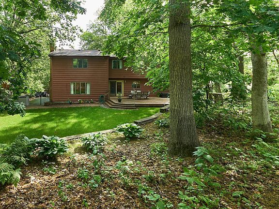 Beautiful 2 story set on a large wooded lot, surrounded by nature in a quiet, secluded neighborhood. Four bedrooms on the upper level including an Owner's Suite with a sitting area, walk-in closet and private, updated 3/4 bathroom. Main floor family room has a Chicago Brick, woodburning fireplace and looks out over a beautiful backyard. Kitchen has a heated tile floor, solid surface counters and lots of pantry space. Nice breakfast bar, Formal and informal dining. Large living room with beautiful engineered hardwood floors and a bayed window. Amusement room, storage and a workshop/workout space in the lower level. Large deck, paver patio and firepit area. Partially fenced yard. Most of the wooded rear yard is beyond the retaining wall and fence with a path leading to the trail along Wilderness Run Road. Award-winning District #196 schools. Near shopping, restaurants, and numerous parks including Oak Chase, Walnut Hill, Goat Hill and Lebanon Hills Regional Park.