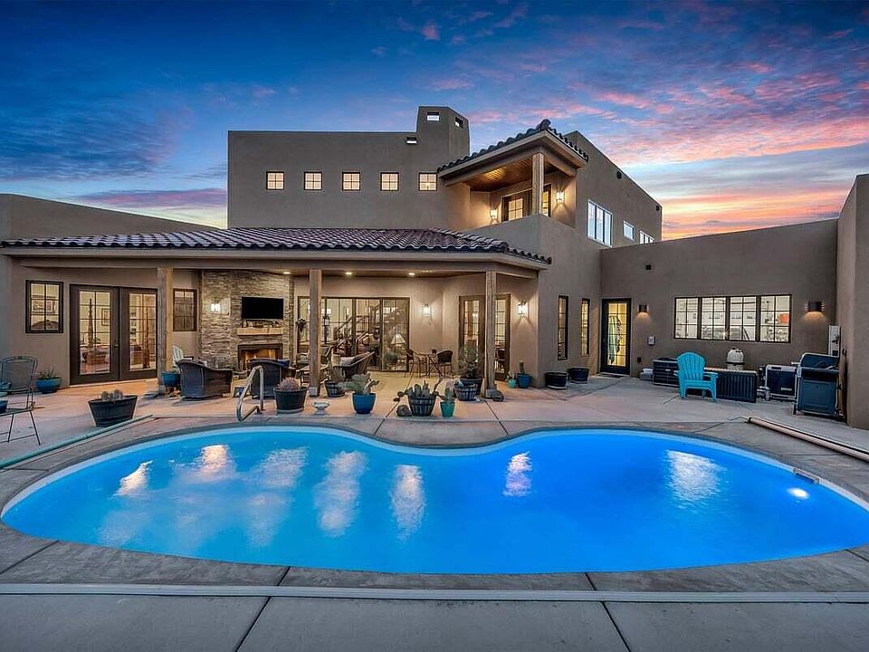 Heated fiberglass saltwater poolSleek steel floating stairsPanoramic viewsPull-through drivewayCovered decksDurable tile roofGourmet kitchen