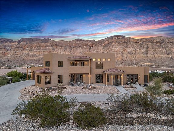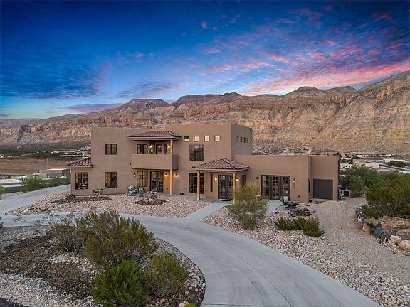 Welcome to this luxury retreat with panoramic views of Pine Valley, Sand Hollow, and the Hurricane Cliffs. This thoughtfully designed home blends elegance with comfort. Step into the grand living room with 22-foot ceilings, a floor-to-ceiling fireplace, and expansive windows that fill the home with natural light. The gourmet kitchen is a chef's dream with two Thor double refrigerators, a Thor 48-inch gas range with two gas ovens, one GE Café convection oven, granite countertops, a convection microwave, ice maker, trash compactor, and soft-close dovetail cabinetry, all complemented by both a formal and casual dining area ideal for entertaining. The primary suite offers true resort-style living with direct pool access and sweeping views. Its spa-inspired bathroom includes a soaking tub, walk-in shower, dual vanities, dual private toilets, and a spacious walk-in closet. Upstairs, you'll find sleek steel floating stairs leading to a loft office space, additional bedrooms with private covered decks, and a full bath with a double vanity.